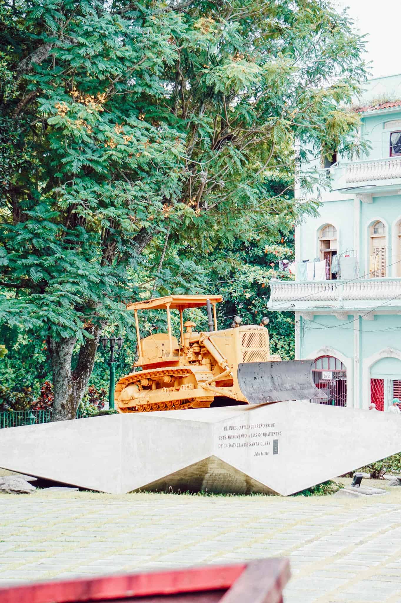 Natürlich wird auch der gepanzerte Zug in Ehren gehalten, denn er gilt als DAS Symbol der Niederlage Battistas. Demgegenüber ist der Bulldozer DAS Symbol des Sieges der militärisch unterlegenen Revolutionäre. Der Tren Blindado ist am originalen Standort als kleines Freilichtmuseum gestaltet worden. Hier wird den Interessierten und Revolutionsenthusiasten ein Einblick in die Revolutionsgeschichte Kubas gewährt. Bei den hier gezeigten Exponaten handelt es sich um originale Waffen, Schwarz-Weiß Fotos, die nach dem Gefecht aufgenommen wurden und eben auch den berühmten Bulldozer. Nicht erschrecken, denn dieser wurde aus unerfindlichen Gründen komplett gelb lackiert. Zudem sind einige der Beschreibungen ausschließlich in spanischer Sprache vorzufinden. Eine Führung durch die Anlage kann also einen großen Mehrwert bieten. Wer in den engen Zugwagons in Ruhe die selbst gebastelten Molotov-Cocktails und weiteres besichtigen will, der sollte früh am Morgen oder am späten Nachmittag das Monumento al Tren Blindado besuchen. Von Santa Claras Zentrum, dem Parque Vidal aus, sind es lediglich 10 Minuten zu Fuß.#